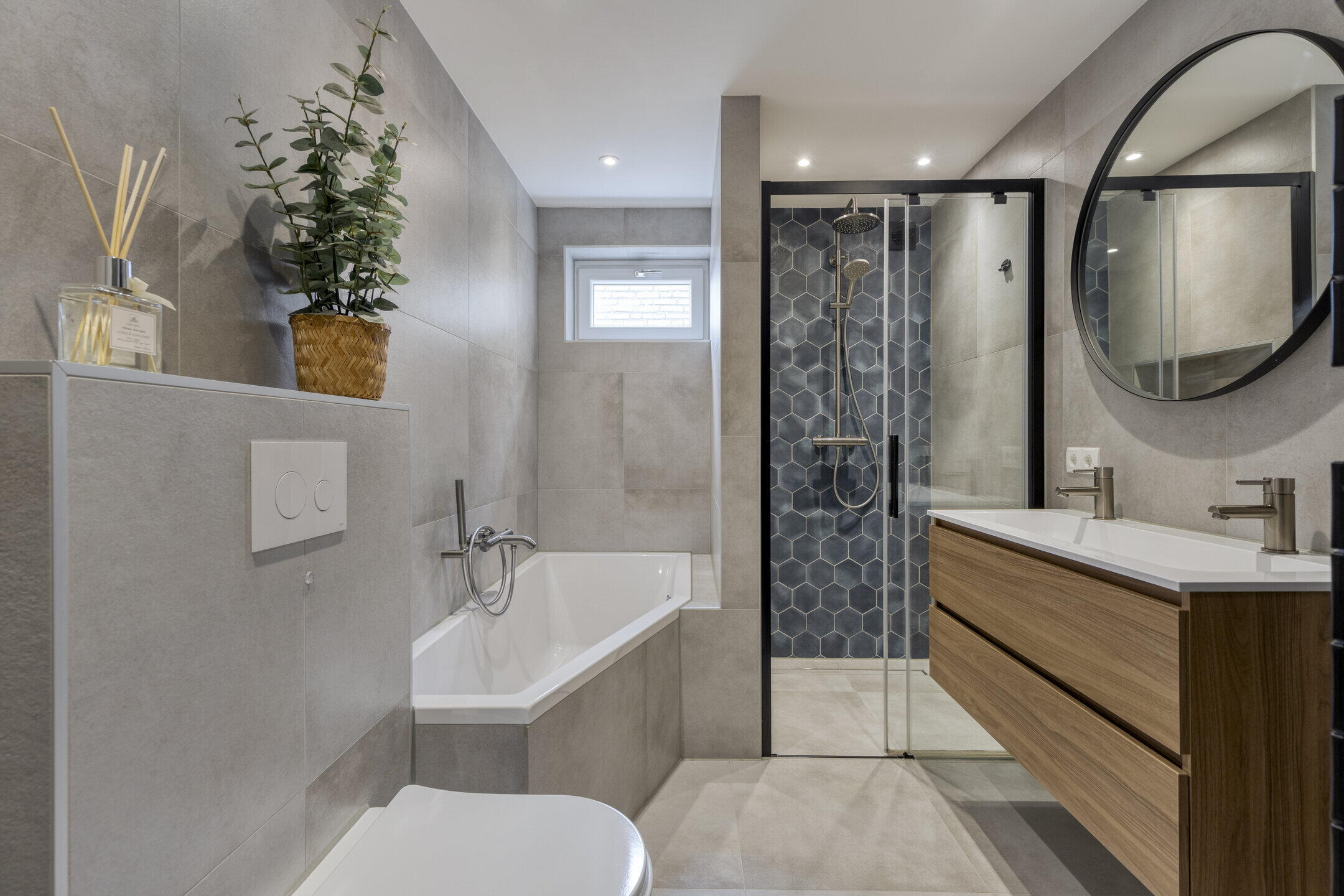 - Ligbad, toilet, douche, wastafel, wastafelmeubel