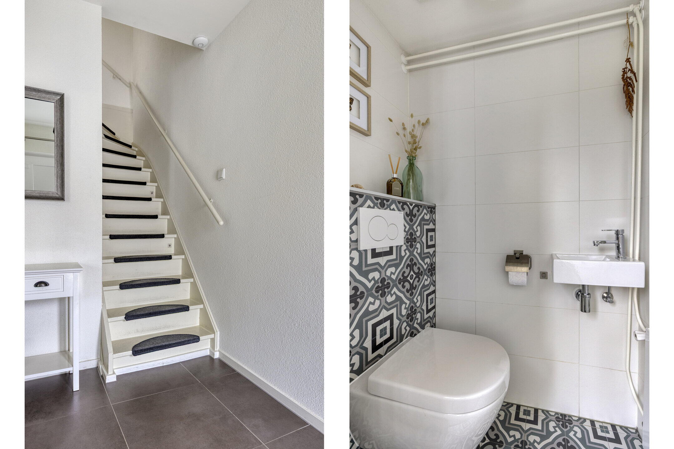 Je komt binnen in een lichte en verzorgde hal met trapopgang naar de eerste verdieping.